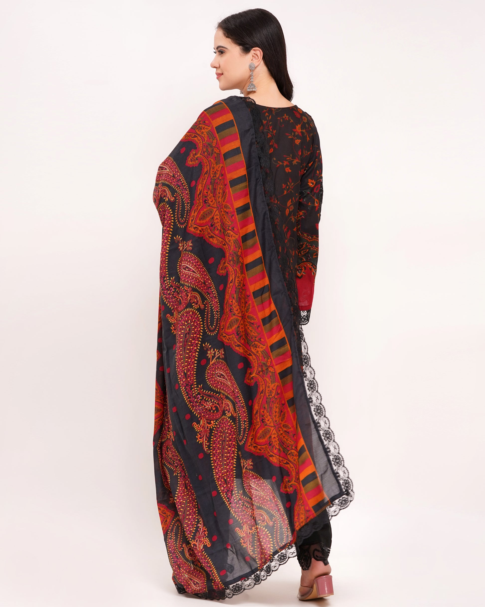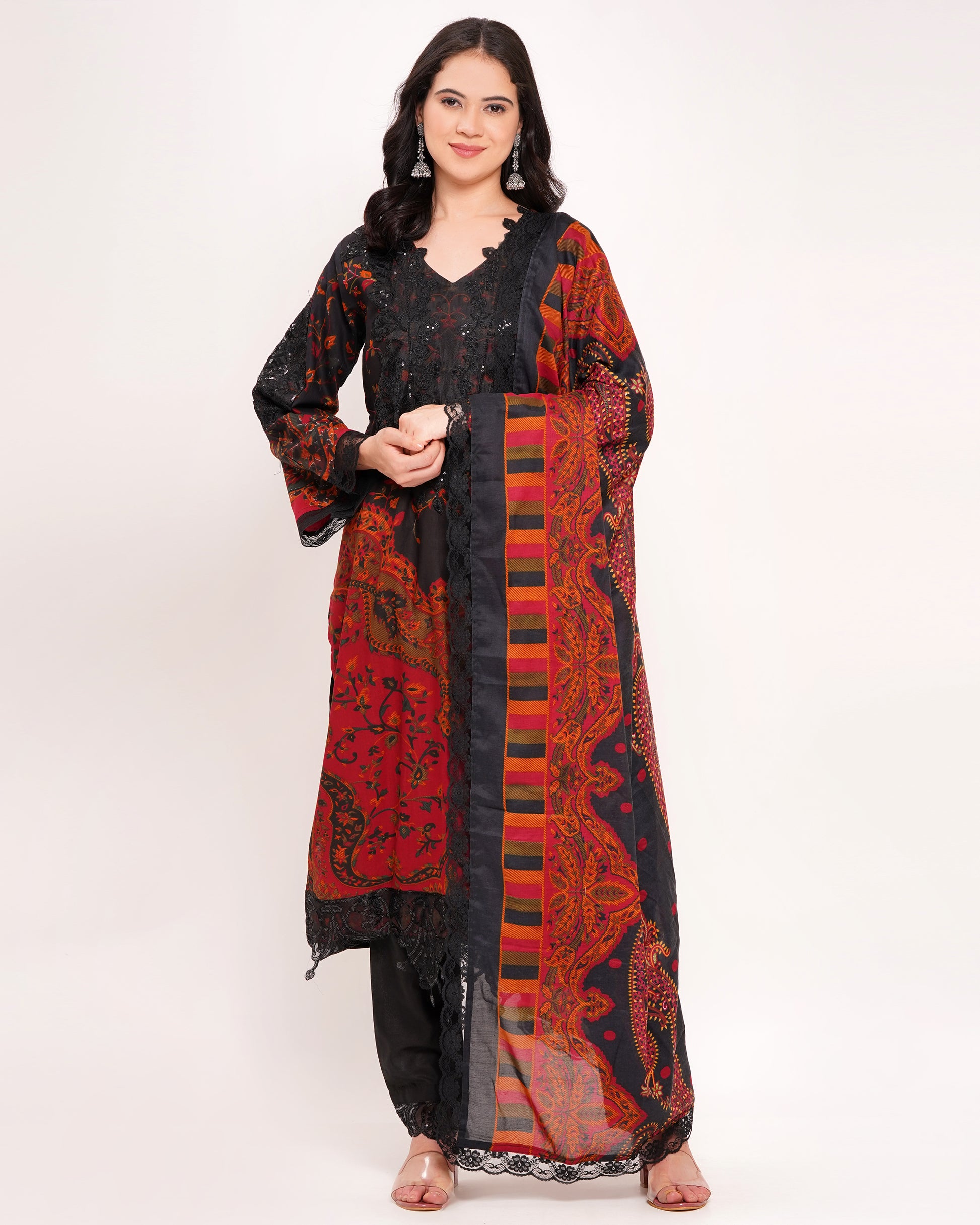 Black & Maroon Pakistani Lawn Cotton Suit Set #1833