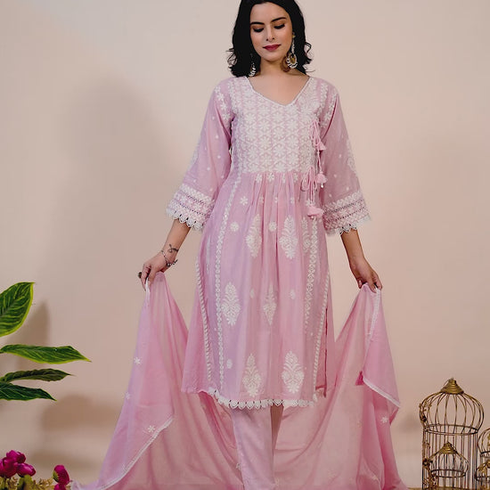 Chikankari Dobby Mal Cotton Suit Set – Blush Pink