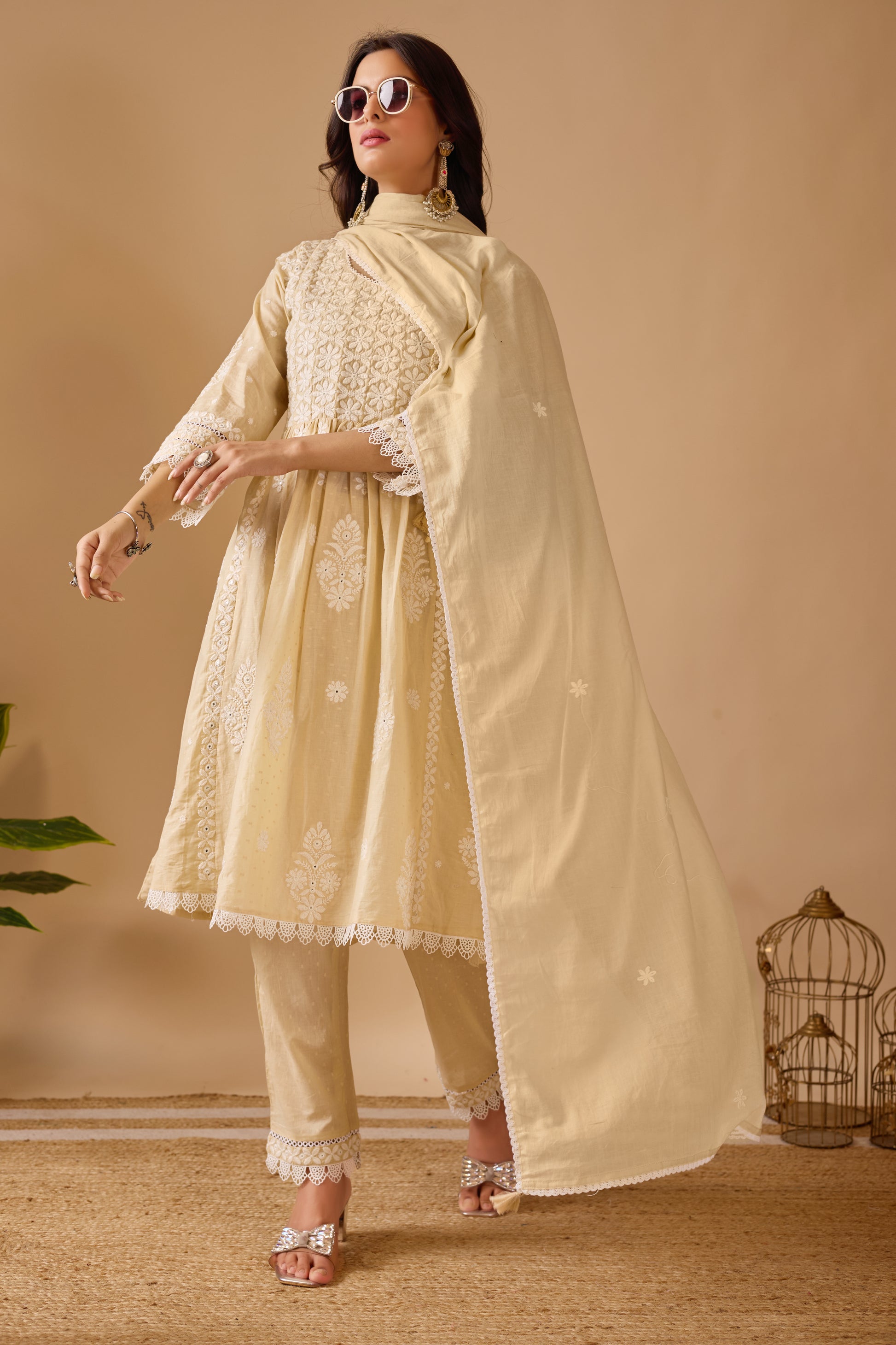 Chikankari Dobby Mal Cotton Suit Set - Soft Beige