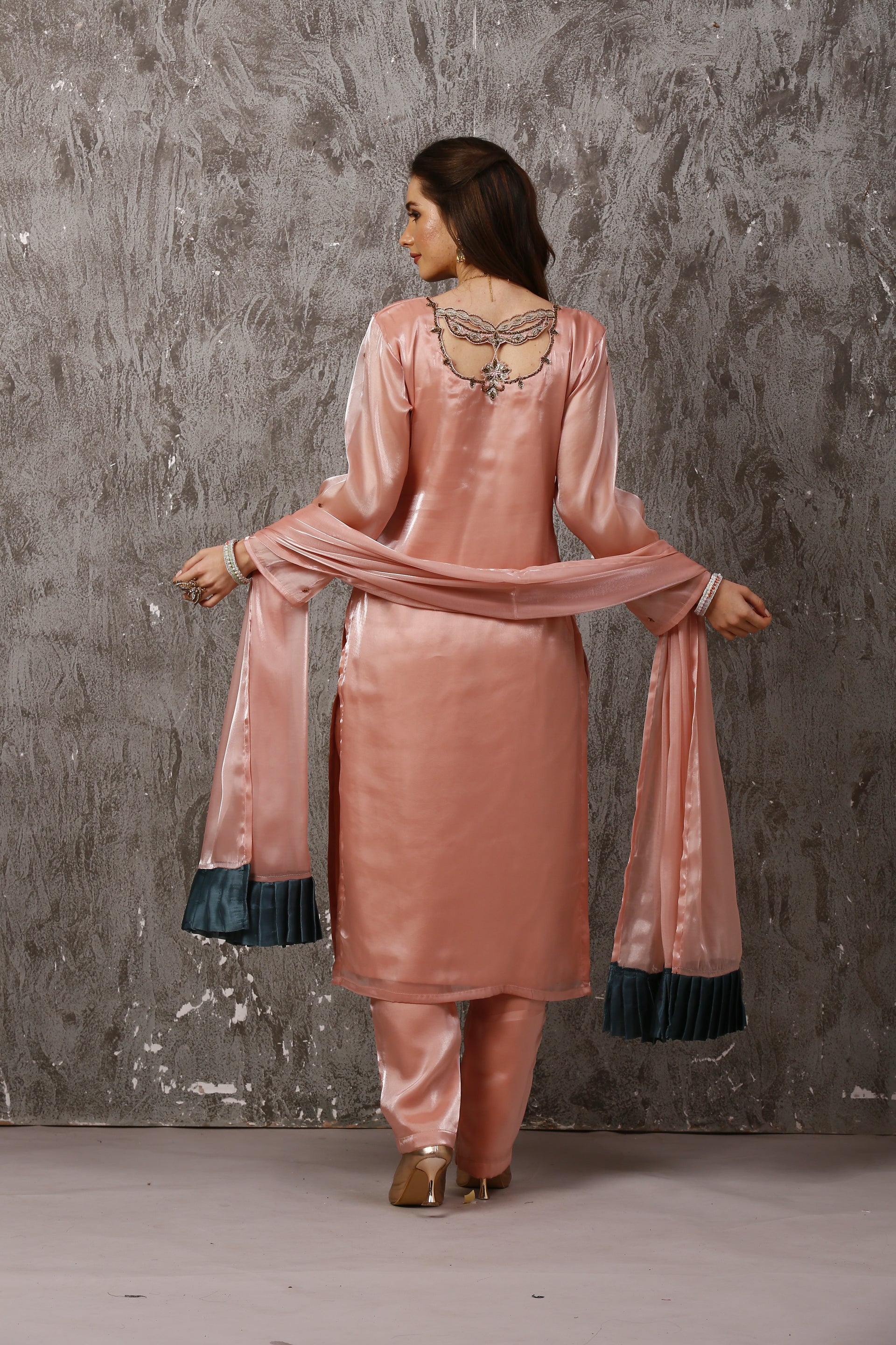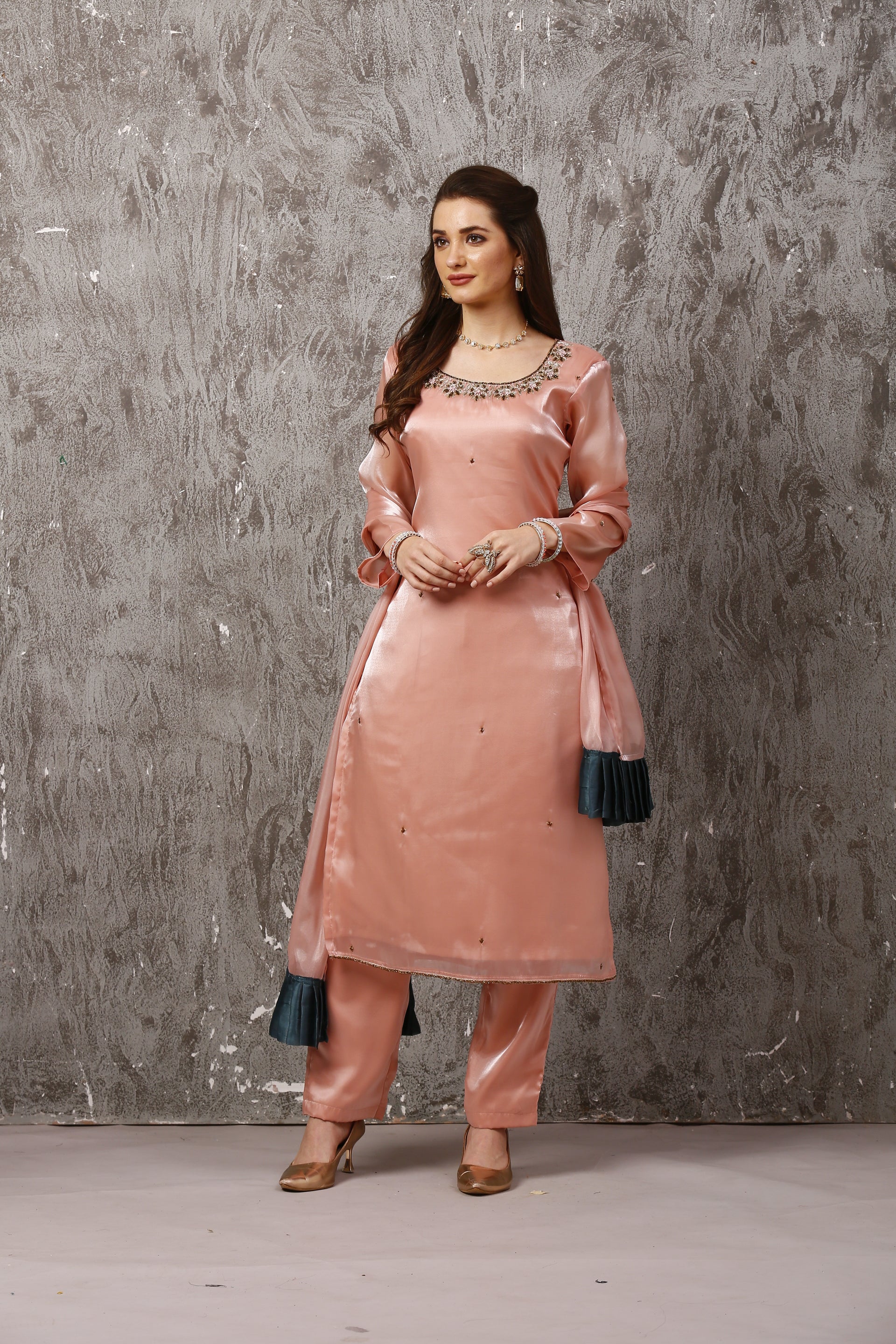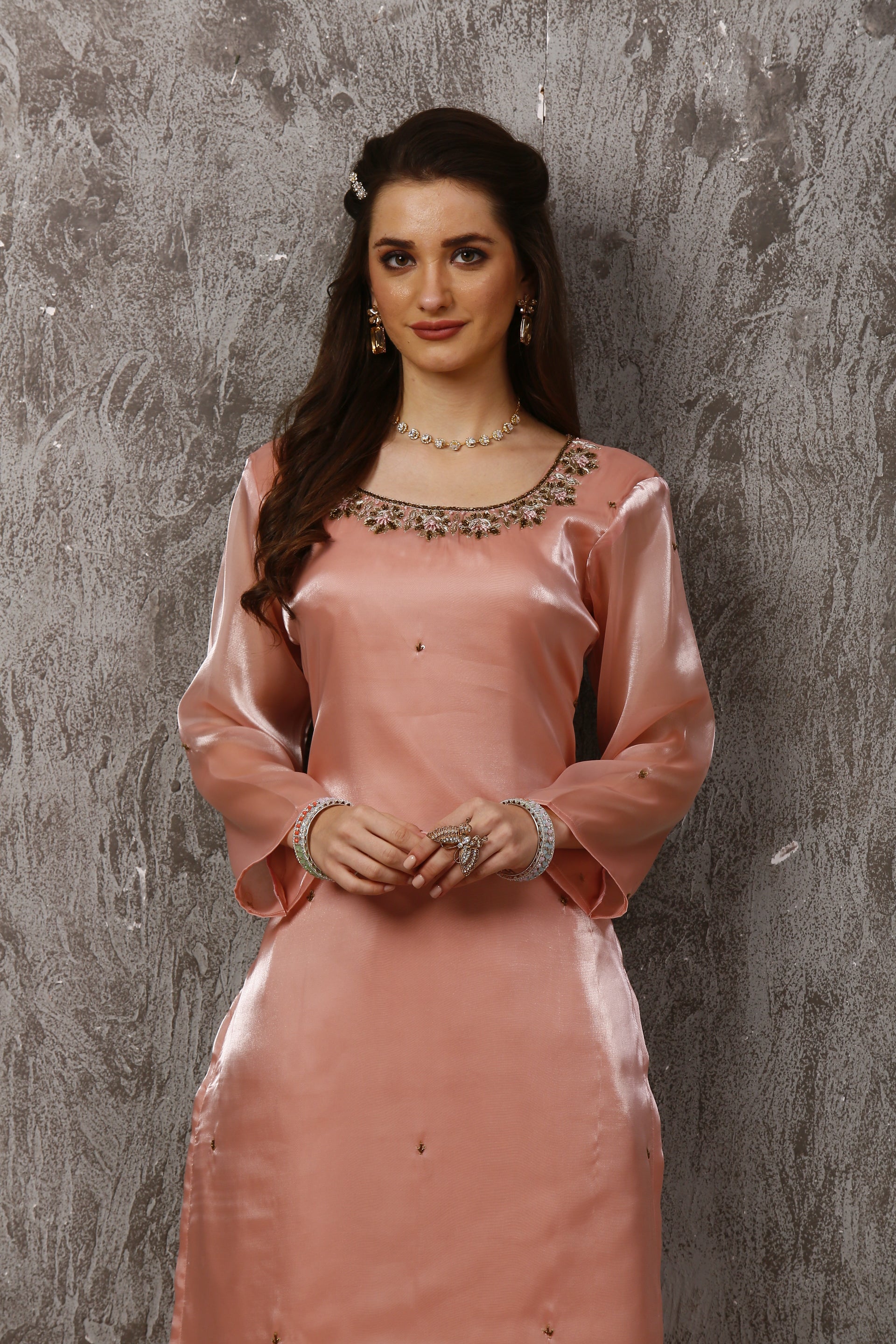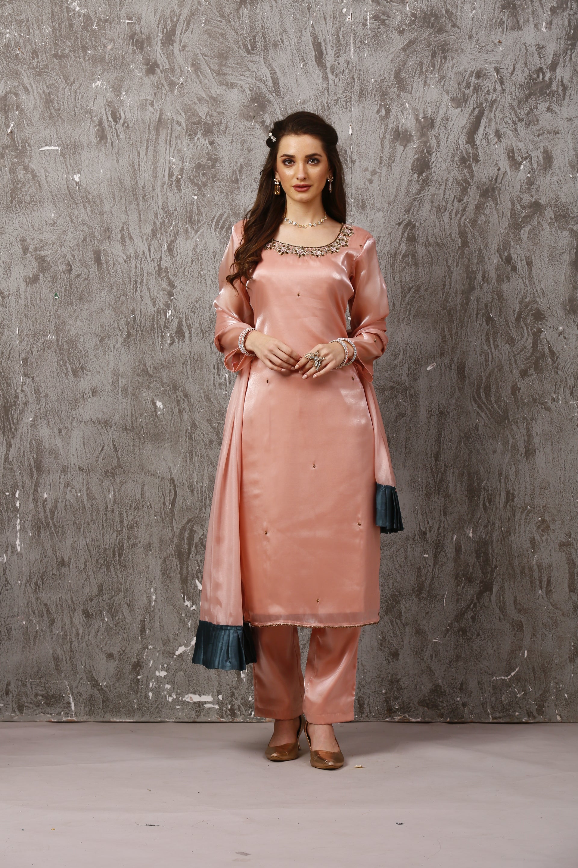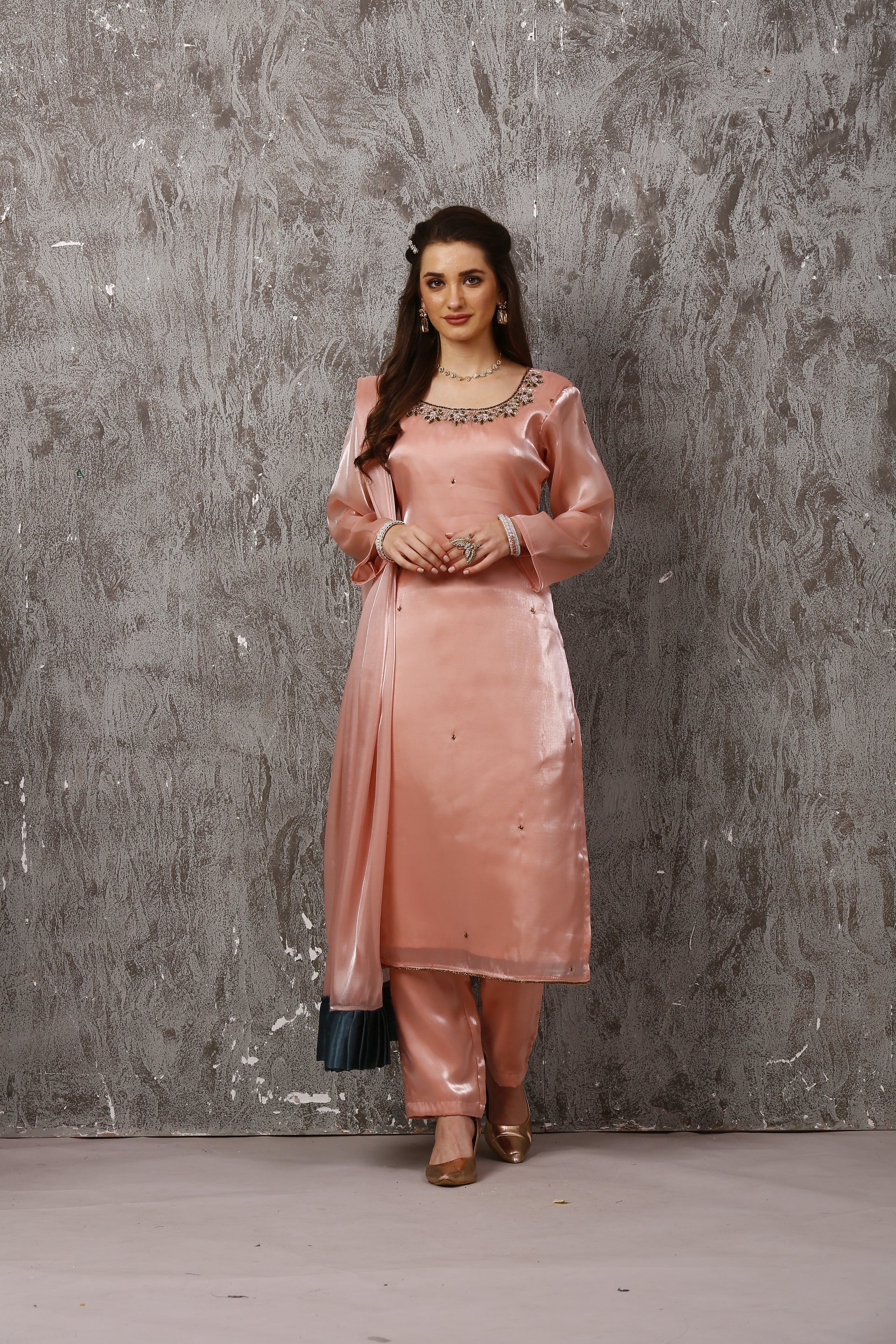 Peach Jimmy Choo Designer Suit Set with Zardozie Handwork #1646