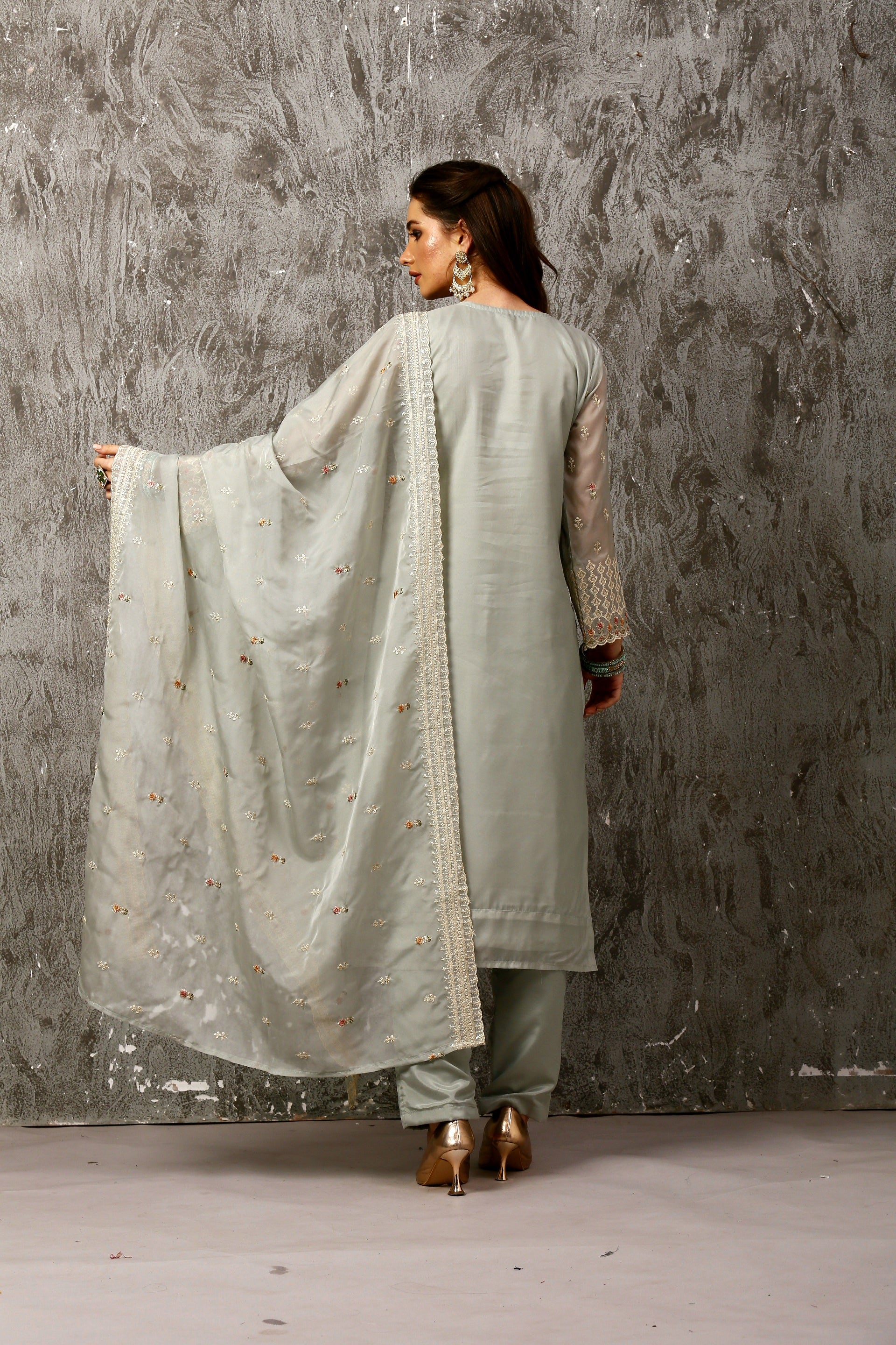 Ice Blue Pakistani Style Organza Suit Set #1612
