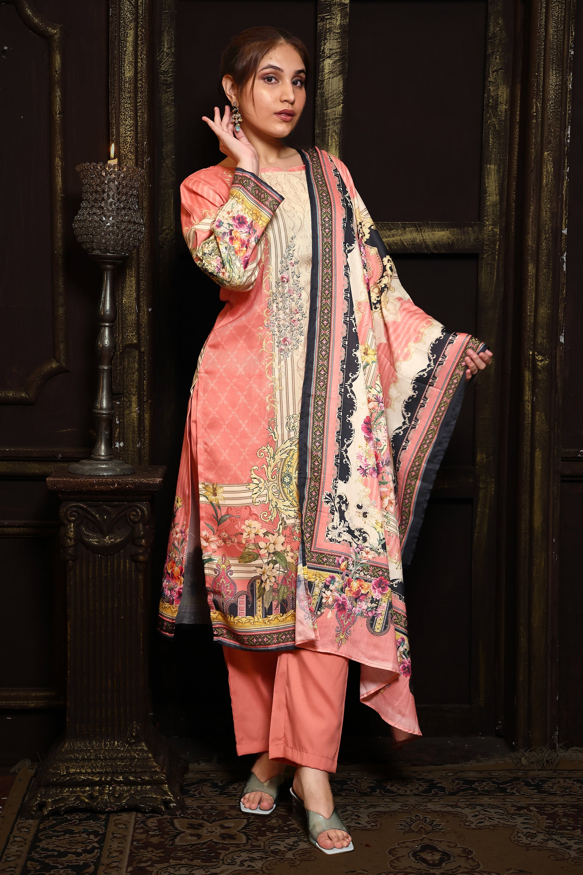 Elevate your winter style with this Viscose Pashmina Suit Set. The digitally printed top features delicate fancy work, paired with a solid pashmina bottom, and a cozy woollen pashmina dupatta. Perfect for warmth and elegance in every wear!