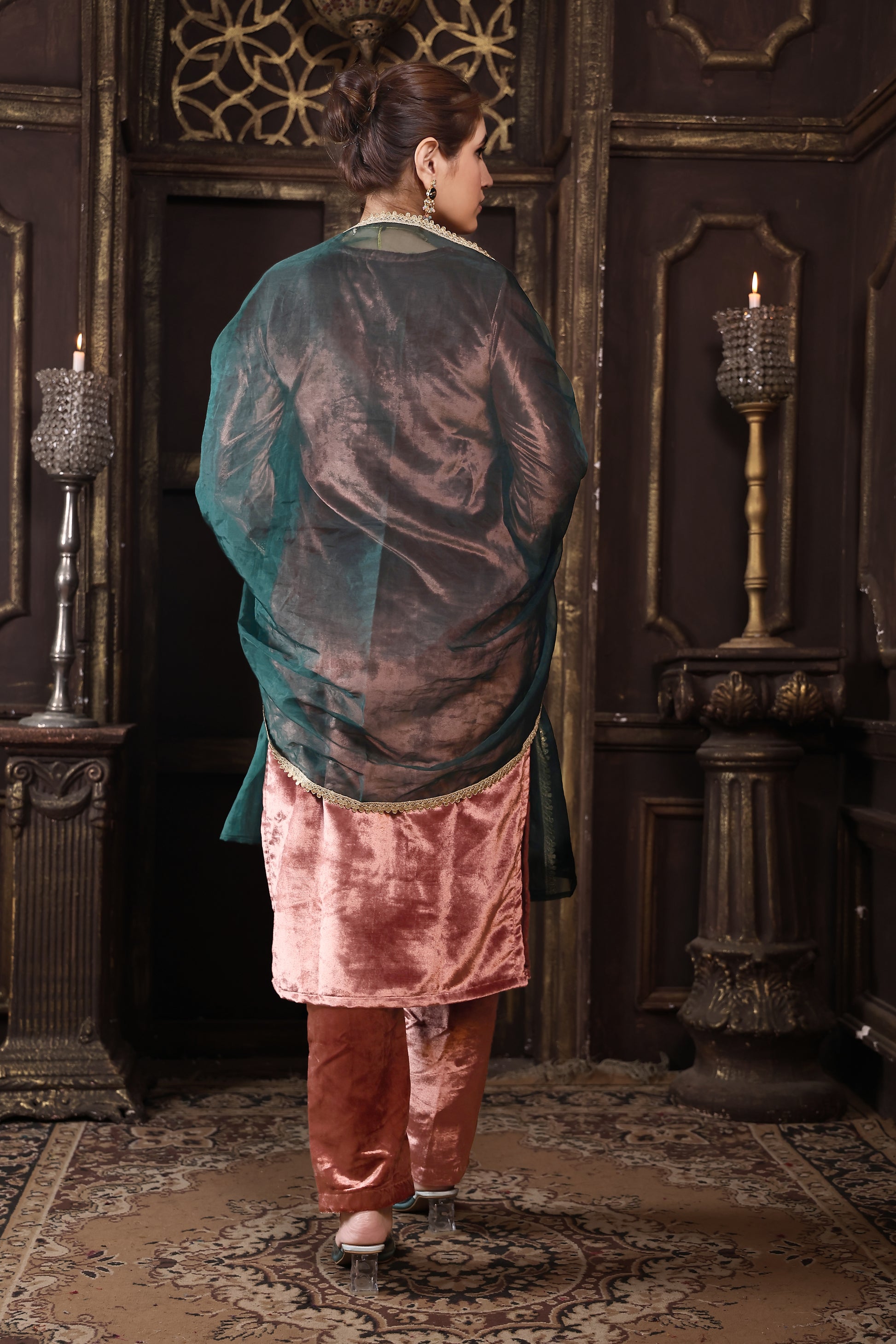 Rose Pink & Bottle Green Designer Velvet Suit #1708