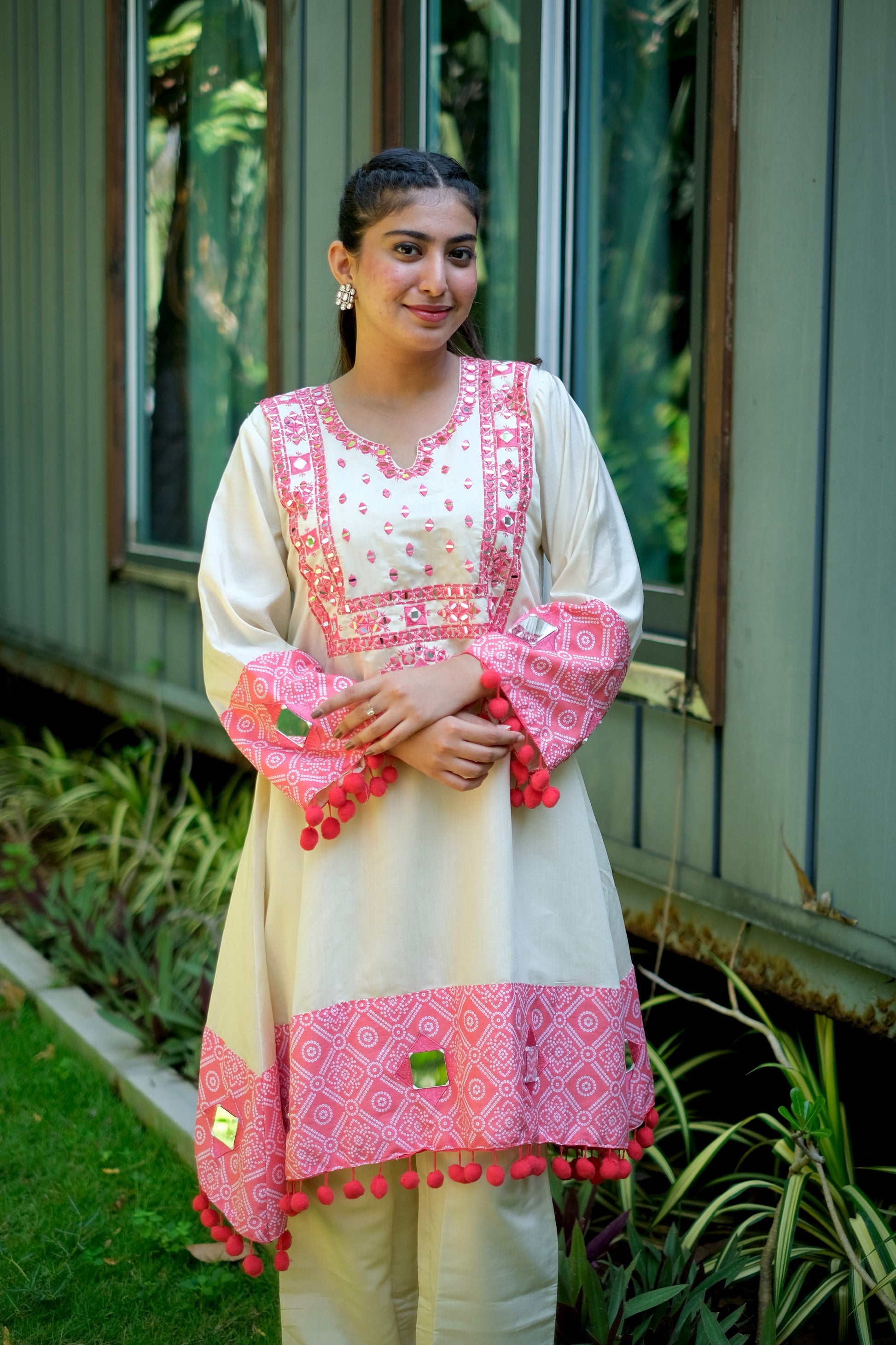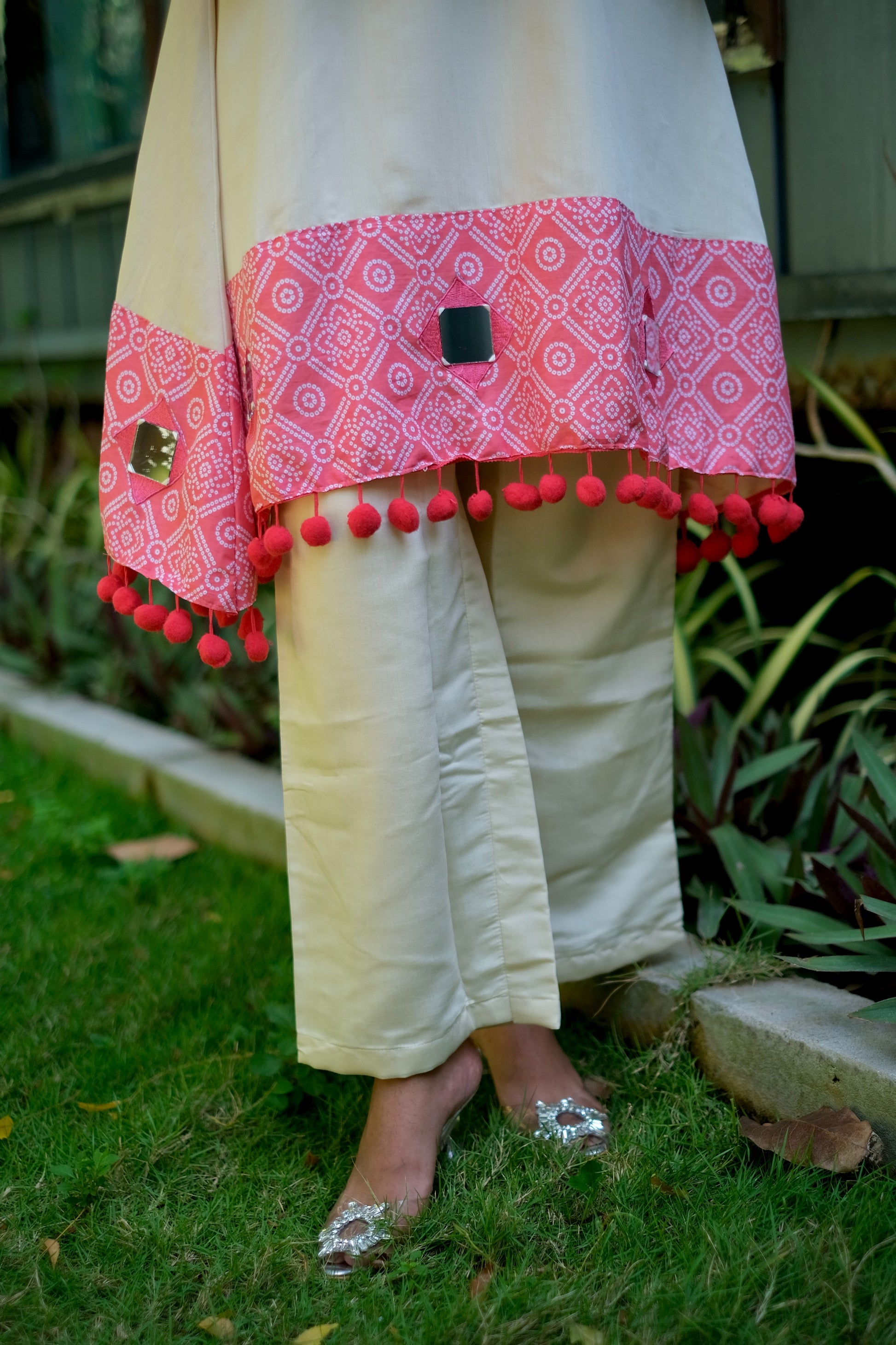 A designer Co-ord set crafted in Roman silk with original mirror, offers a luxurious and sophisticated ensemble .Both top and bottom are lined.